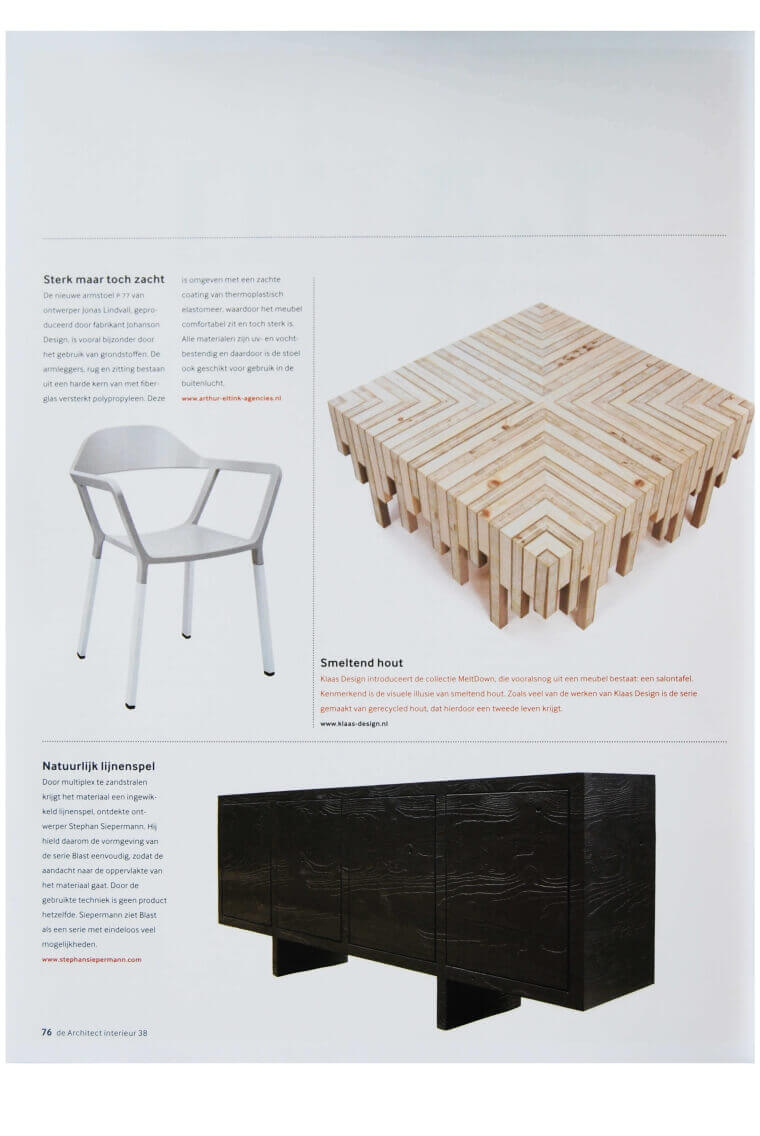 de architect article in the architect about new blast furniture.download article here. Stephan Siepermann ProductsStorageTablessittingLightingAccessoriesProjectsAboutShowsPressContact