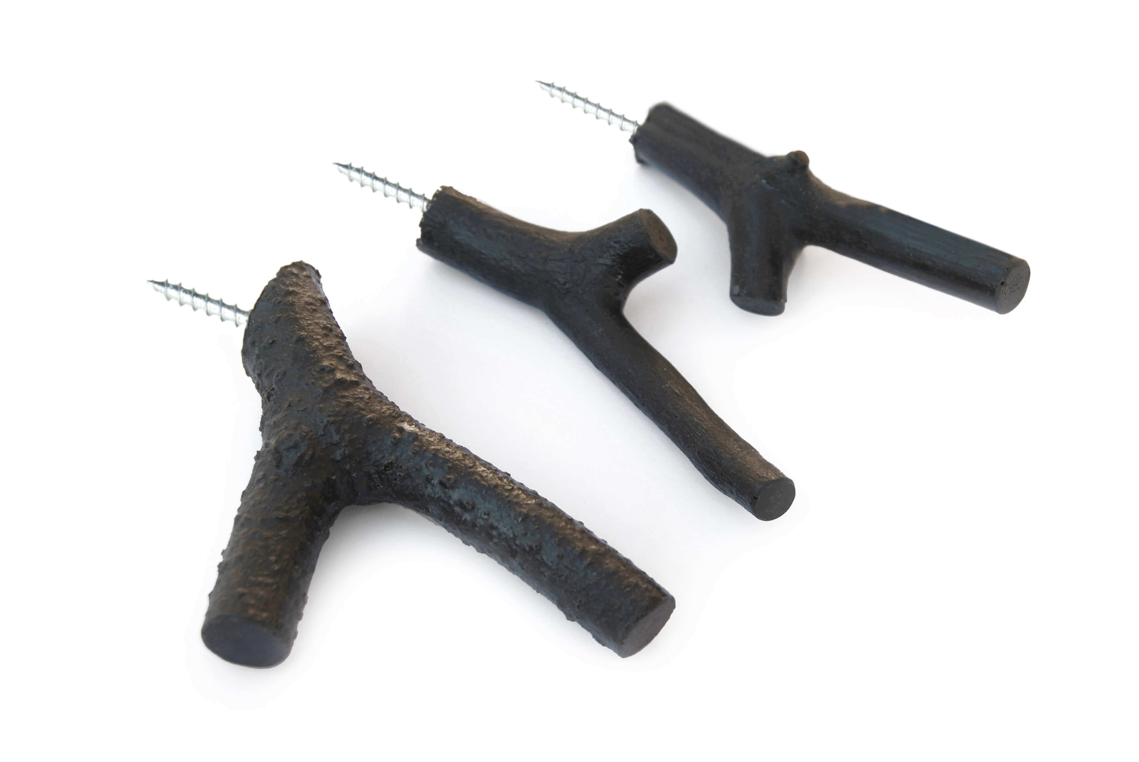Takkies are little wardrobe hooks made of casted plastics. They are exact replicas of real existing small wooden branches found in the forest. moulded in silicones and reproduced. Available in 3 shapes.