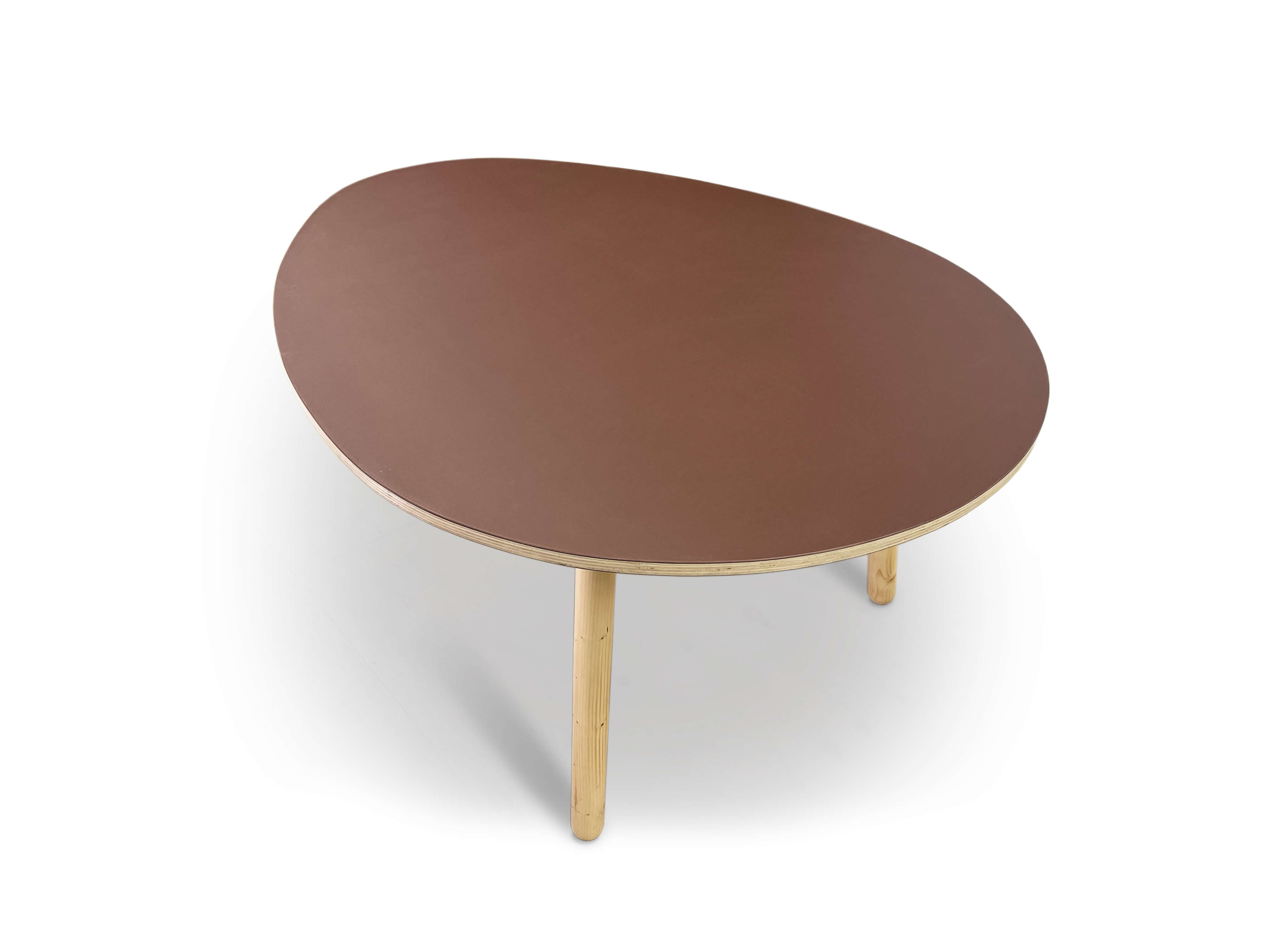 A year after the introduction of the egg table, here is a new version: the eggtable 2.0. There are a few big differences: 2.0 has a steel frame and the tabletop is not carved from solid beams anymore. This makes this new table much lighter and also easier to produce. It is the industrial version of its arty big brother so to say.