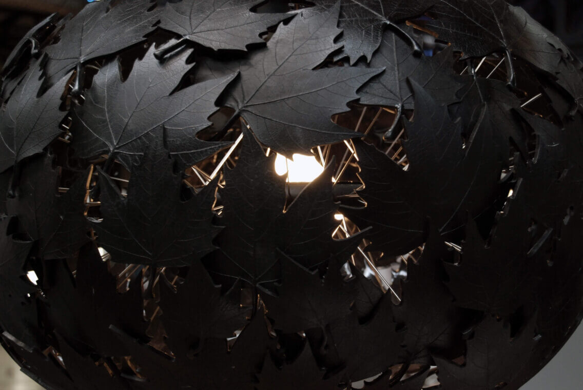 A treeshape floor-lamp using casted plastic leafs as a lamp-shade. The lightsource shines through the leaves like the sun on a sunny day. The leaves are actually copies of leaves from the plane-trees outside the designstudio.