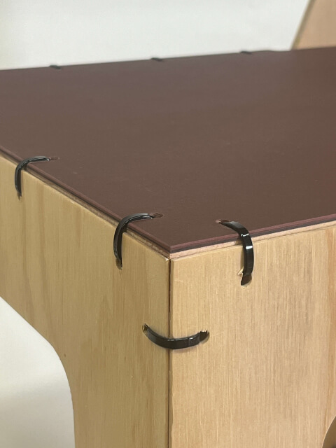 - Material: 9mm laquered multiplex, tierips, blanco, felt or marmoleum.