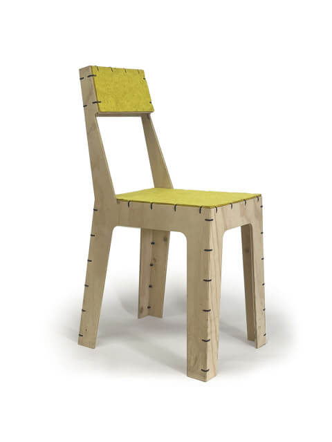 You can choose between a blanco version and two different materials for the toplayer for seat and back: felt of Forbo desktop marmoleum. There are a lot of colours available in both materials. Down here some examples of a few available colours. Contact us for information about your favourite colour.