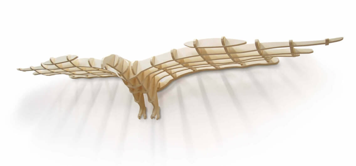 This eagle is another example of a new series of animal shaped furniture objects. It is a (book) shelf or a wardrobe but above all quite an impressive object.