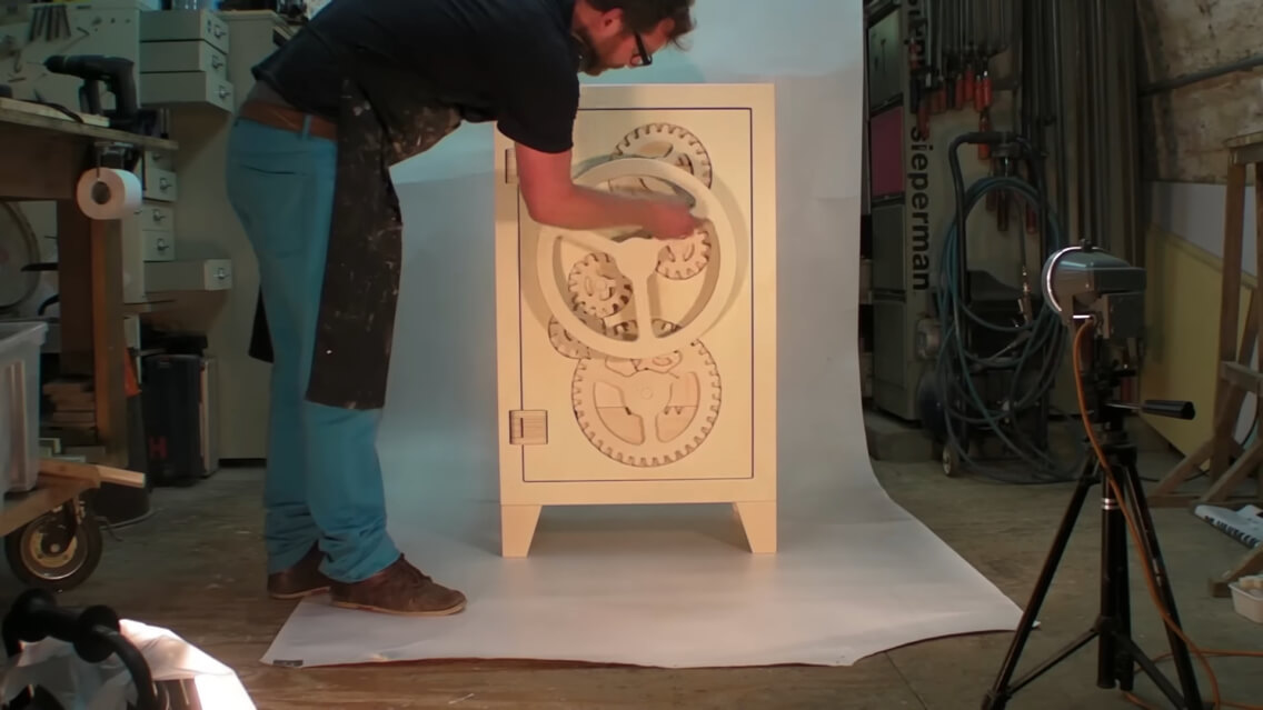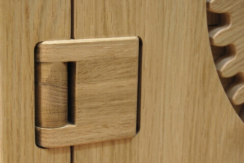 Mr. Knox is a funny translation of a heavy steel safe box into a smart and playful wooden piece of furniture. The cnc cut gears fit perfectly together which enables the closing system to work exact as its steel example. The cabinet is 99,9% safe and it is delivered together with a beautiful wooden 'gold' bar and two adjustable boards. Mr.knox can also be a liquercabinet, it can be assemeled with bottleboards for max. 7 layers of wine bottles. (42 bottles).