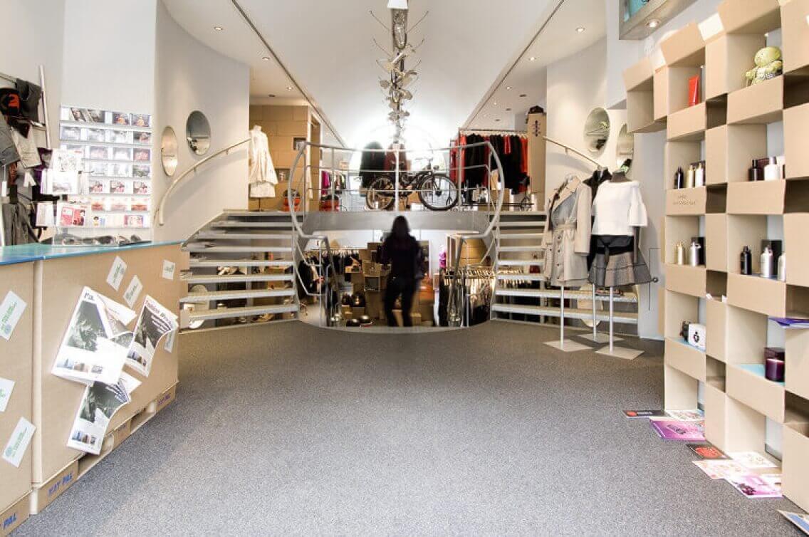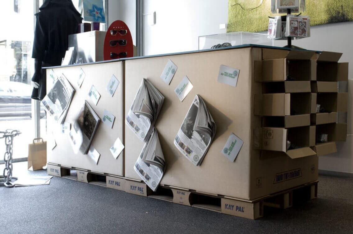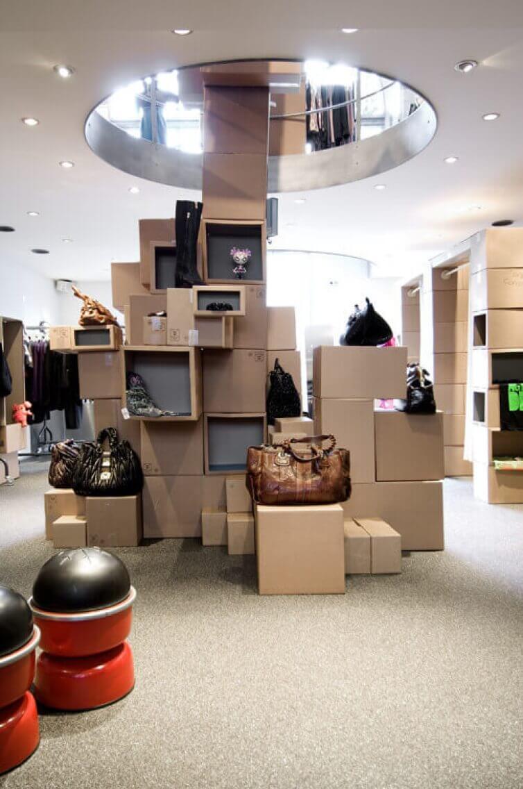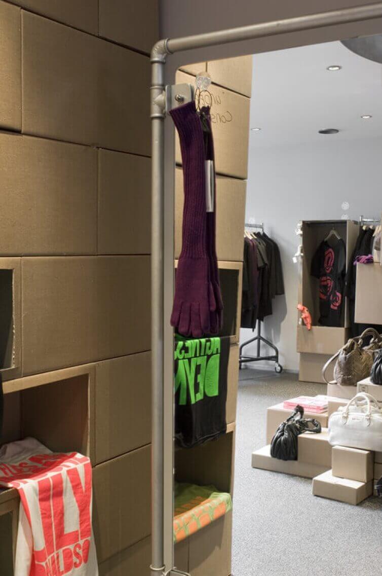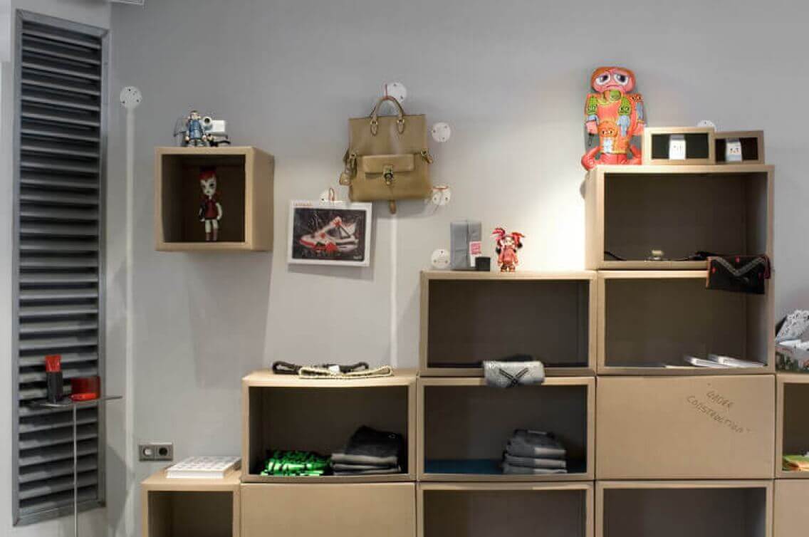 Closing the shop during the design- and buildingproces was not really an option so we came up with a temporary shopconcept; a cardbox guerilla store. This gave us the oppurtunity and time to think and design the interior without having to close the shop for longer as neccessary.