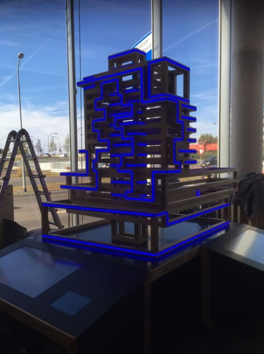 Together with Kim van Bakel and Lagotronics i realized one big and one small model of the new city hall of Venlo and also some signing. The items were designed to inform young and old citizens of Venlo about cradle to cradle (C2C) in general and the choices which were made within the building proces of the cityhall.