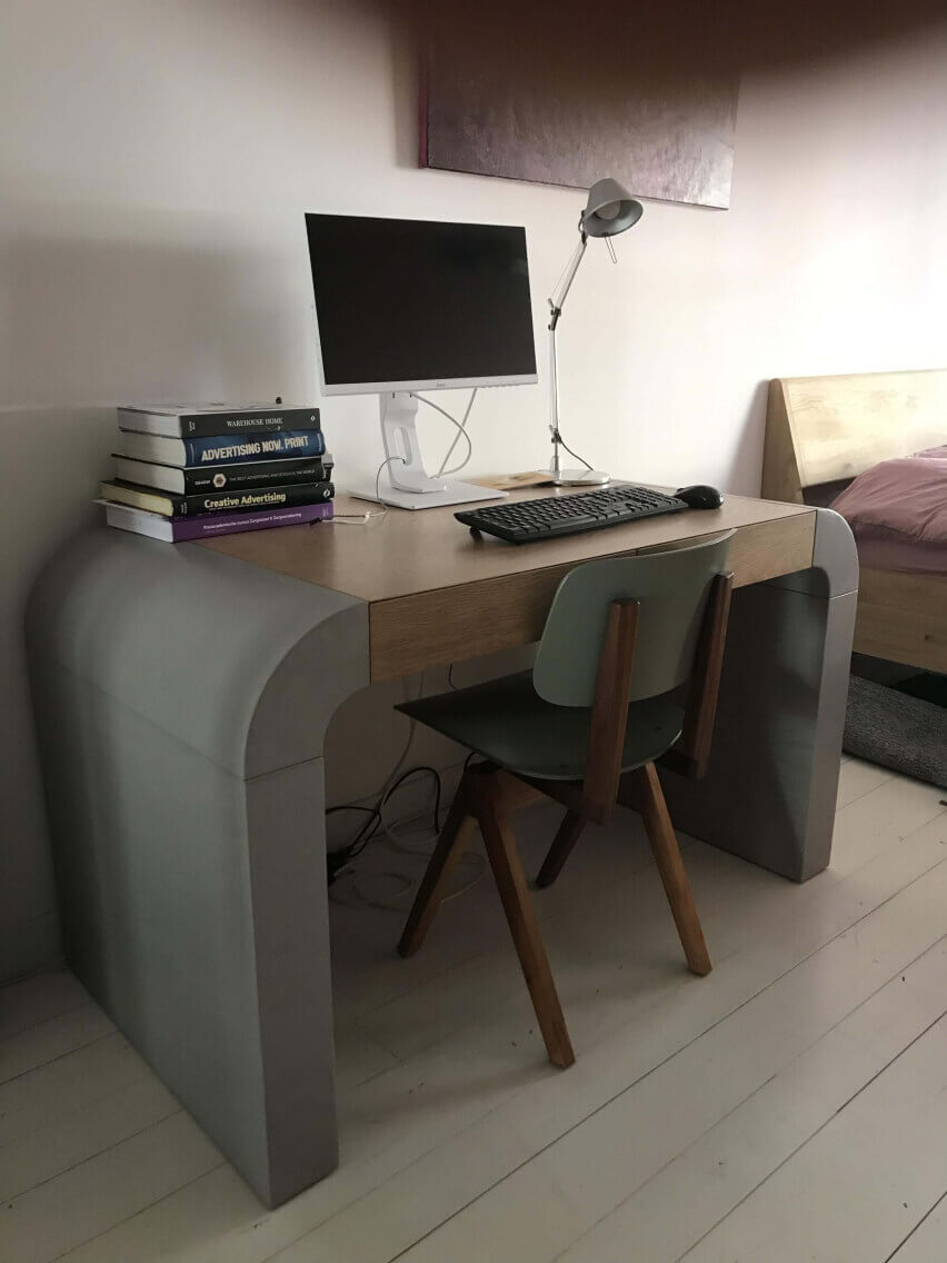 Now i designed and produced betoncire furniture for them. A cabinet and desk for the bedroom. Quite an interesting but difficult procedure but the results are great.