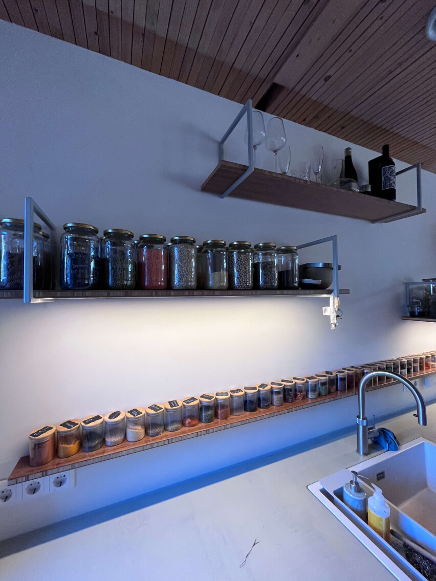 The kitchen is IKEA based but with custom made doors. I used betoncire for the desktops with organic shapes. A very nice project for very friendly customers.