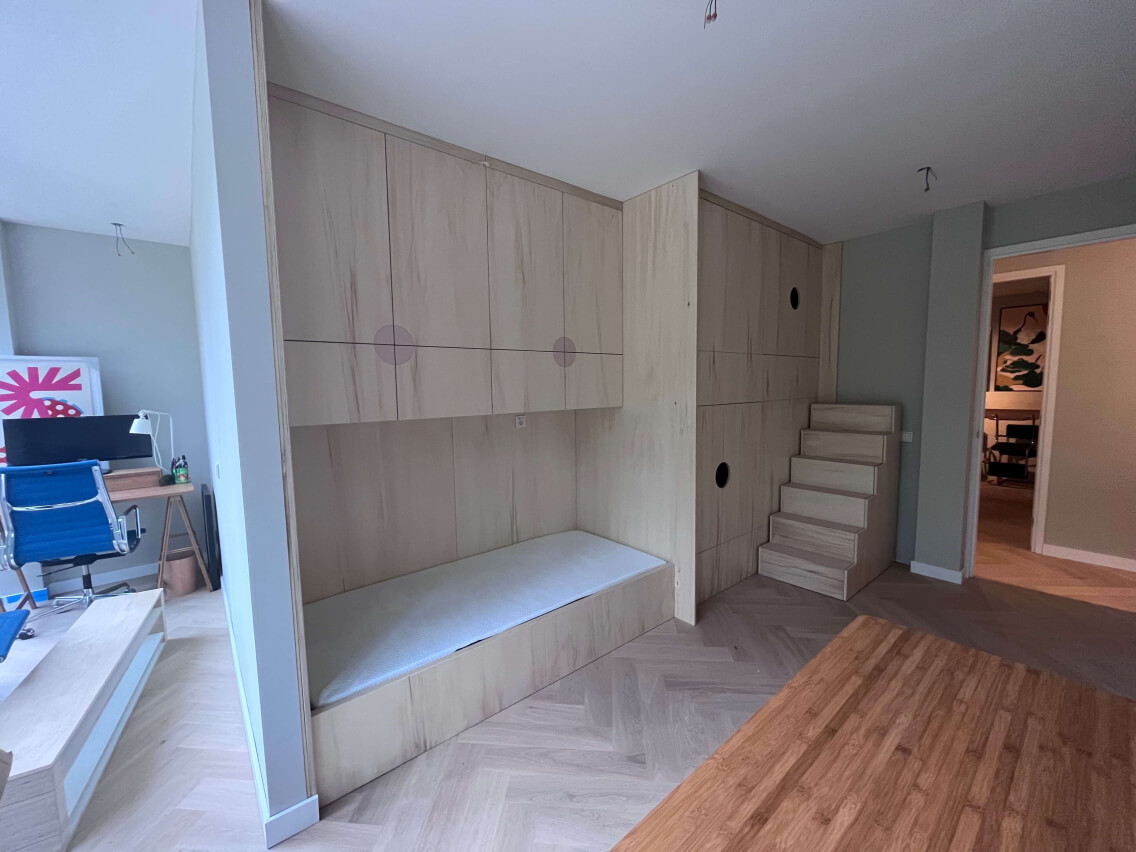 For a private client from Amsterdam-North, who once ordered a mr.knox, i had to build almost the complete interior for the new house. I was asked to design and produce beds, desktops, cabinets, cat-houses, stairs, storages, warderobes etc. It was quite a big order with a lot of items and i worked for over a year for the client. Especially the 3 beds with storage was a design and contruction challenge. The endresult is great and everybody is happy.