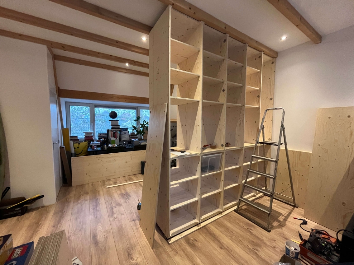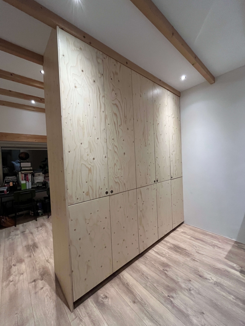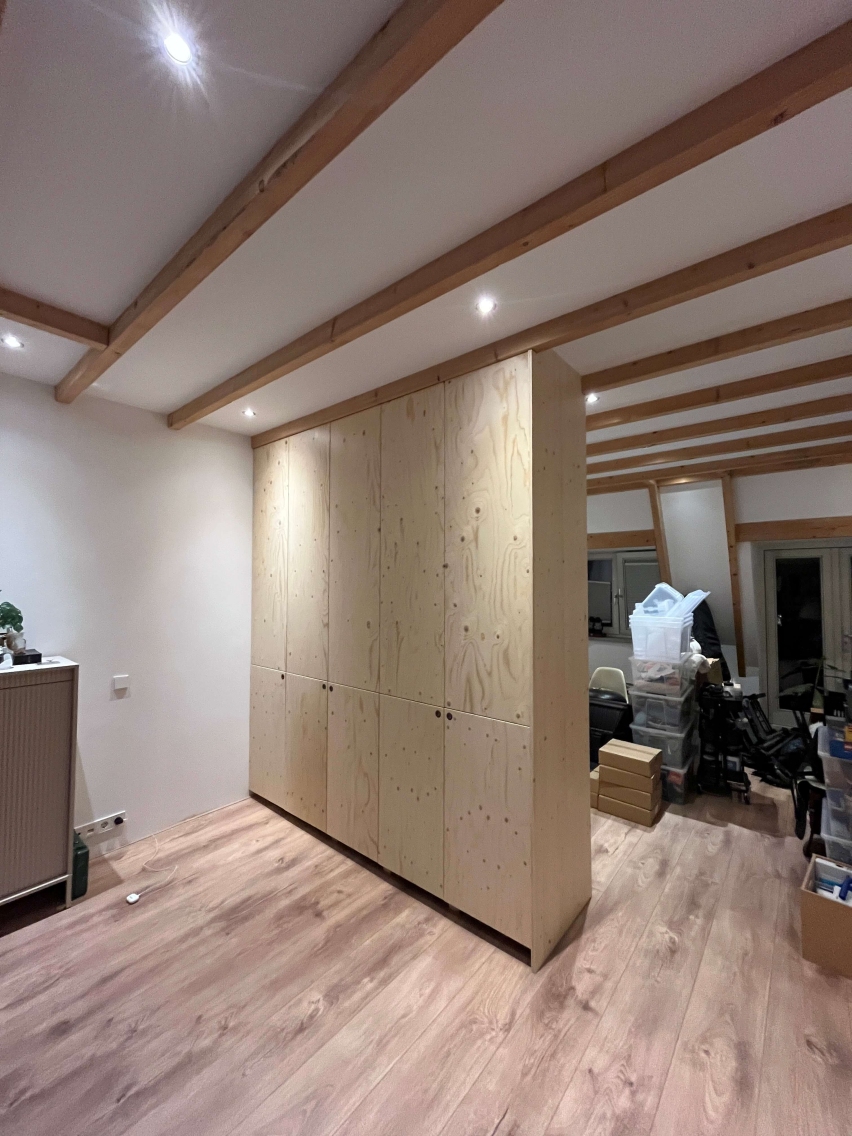 For a private client i designed this two-sided cabinet in sprucewood. The cabinet is split in two parts which open up in both sides. Therefor this cabinet is a roomdevider and a cabinet in one.