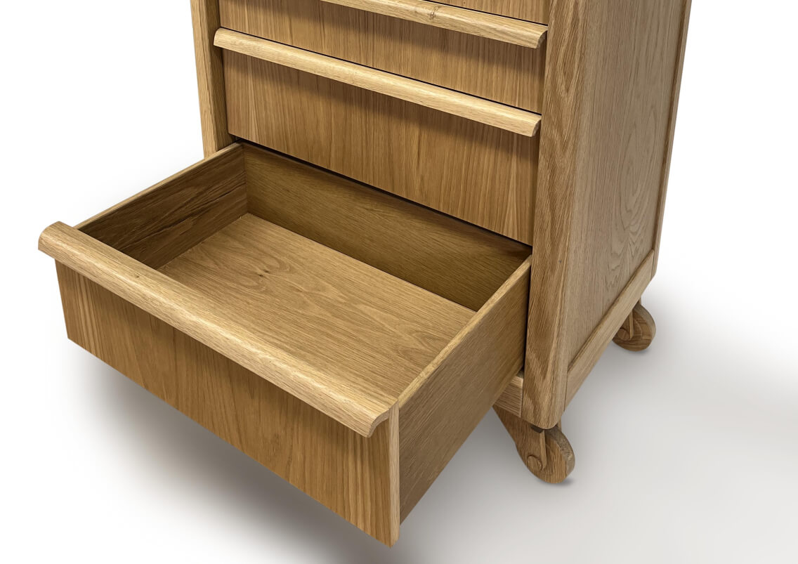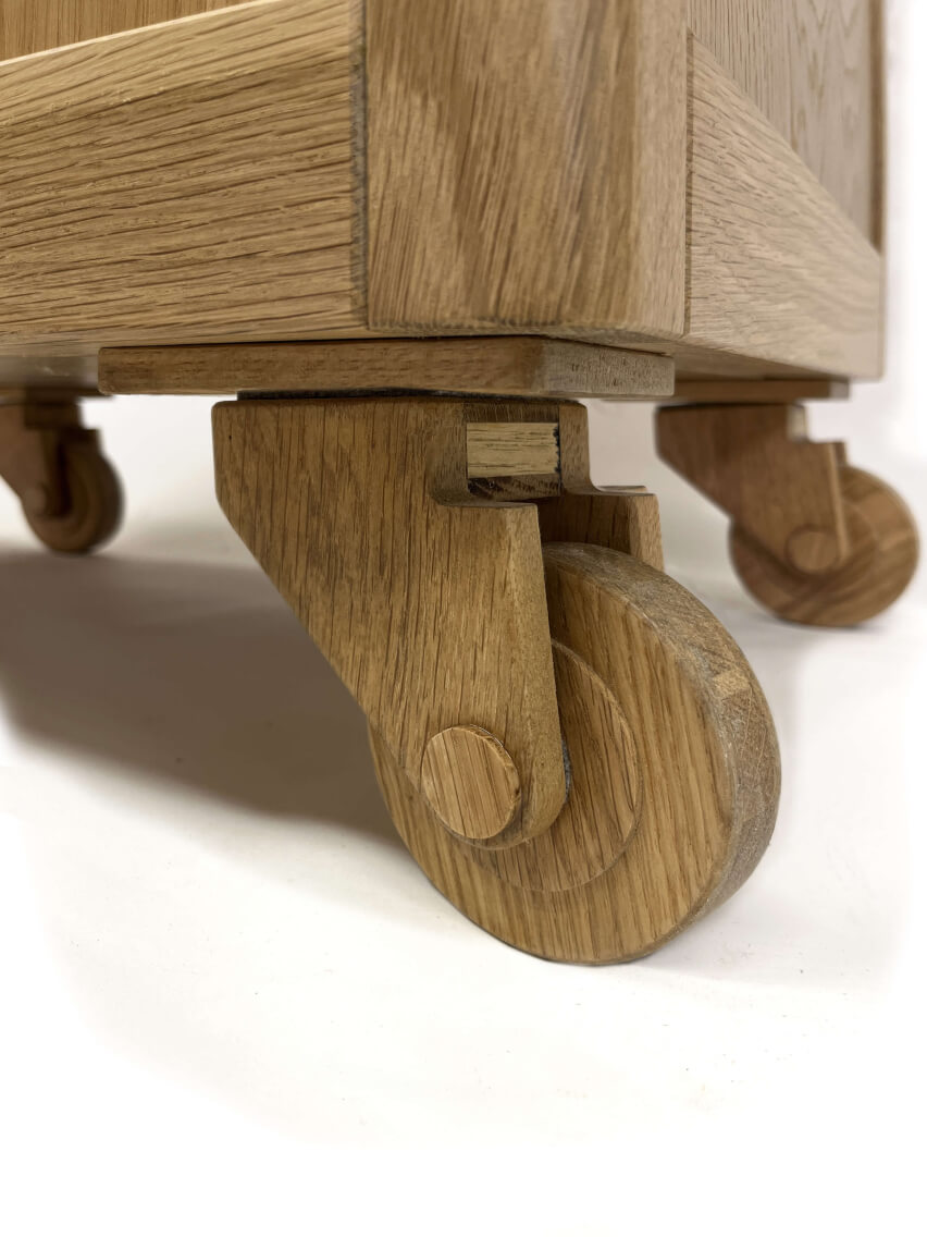 The idea for the drawercabinet came to me when i was working on wooden technical objects like the Knockylock, knockychain etc. I was making wooden tools for some time and i just needed a place to store them. The trolly was the perfect solution and logial next step for this problem.