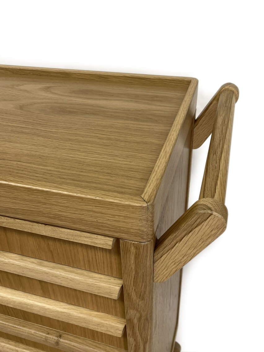 - Materials: solid oak and mdf with oak veneer